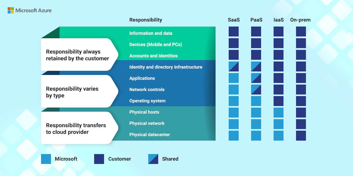 The following diagram shows the shared responsibility model between customer and cloud provider: