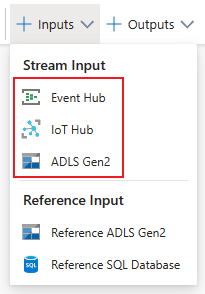 For more information about the streaming data inputs, see Stream data as input into Stream Analytics.