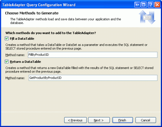 Abbildung 7: Lassen Sie den TableAdapter alle Datenzugriffsmuster nutzen (Klicken Sie hier, um das Bild in voller Größe anzuzeigen)
