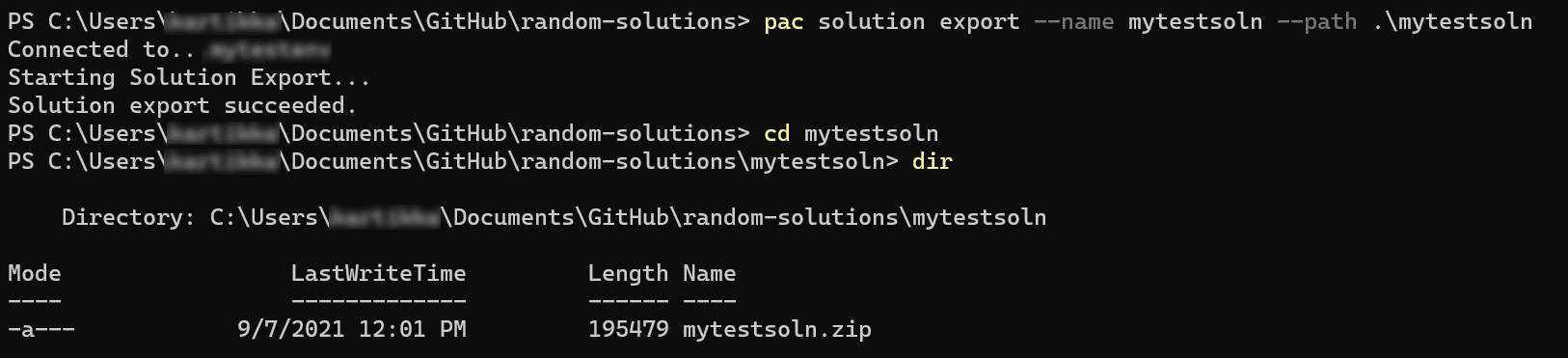 Beim Exportieren der Lösung mit pac solution export möchten Sie die Lösung über das Enwicklerportal exportieren, und die resultierende Ausgabe ist eine Lösungs-ZIP-Datei.