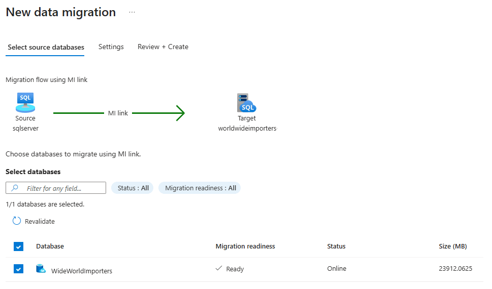 - Select target: Wählen Sie ein SQL Managed Instance Ziel für Ihre Migration aus.