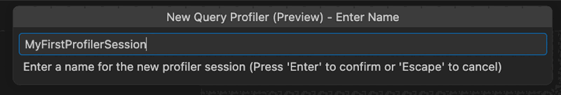 ON DATABASE) und nicht auf den Server begrenzt sind. Sperr- und Dauerfiltervorlagen sind für diese Verbindungen nicht verfügbar.Geben Sie einen Sitzungsnamen ein. Drücken Sie die EINGABETASTE, um den Vorgang zu bestätigen oder ESC-TASTE, um abzubrechen.