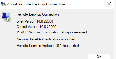 Could you please provide your OS version and Remote Desktop Connection (RDC) version?