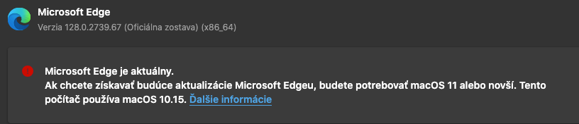Previously, I saw that Chromium 128 will be the last version to run on macOS 10.15 Catalina. And when version 129 released, it needs macOS 11 Big Sur or later. Will Edge drop support for macOS 10.15 like Chromium does? If it does, please let me know because some of my friends are still using macOS 10.15 Catalina.
