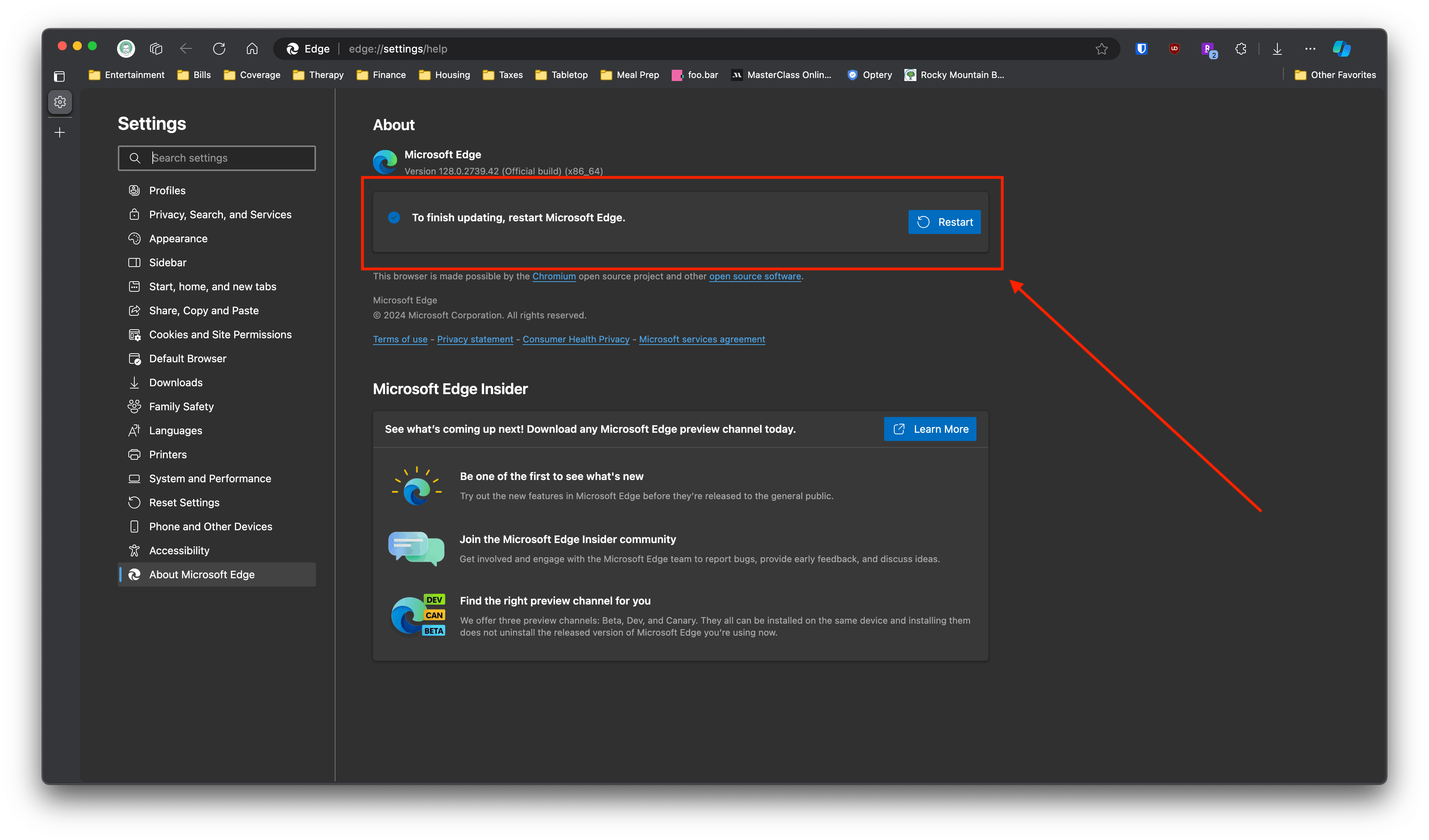 Every time I try to update Microsoft Edge, the update never fully goes through.