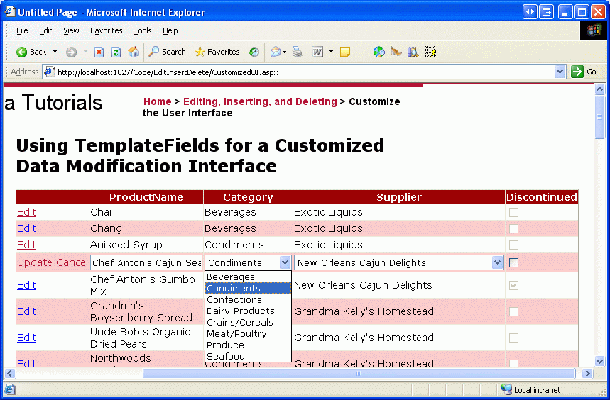 Step 3: Using a DropDownList for the Category and Supplier Editing Interfaces