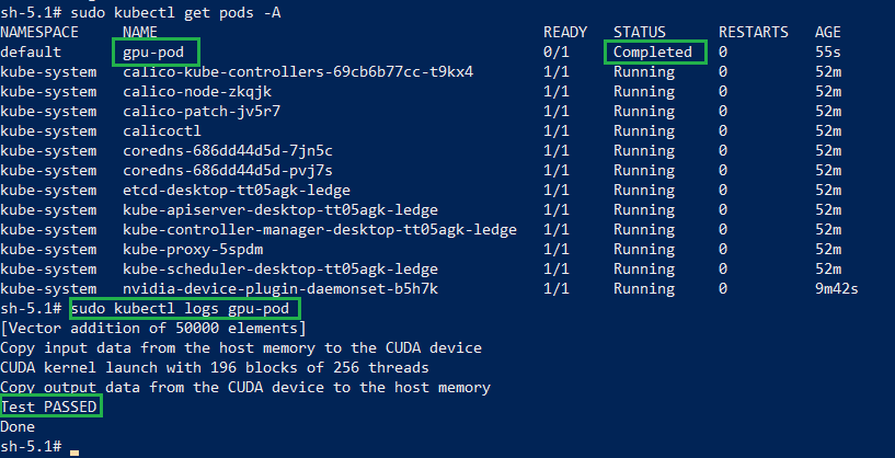 kubectl apply -f .\gpu-workload.yamlVerify that the workload ran successfully: