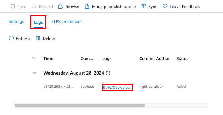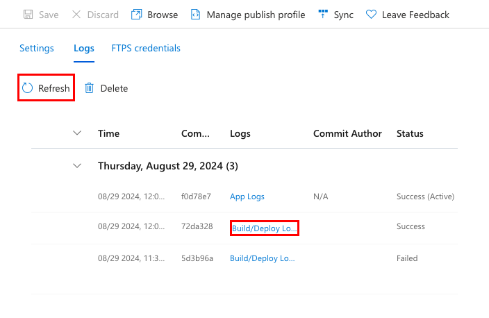 In the AZD output, find the link to stream App Service logs and navigate to it in the browser. The link looks like this in the AZD output:
