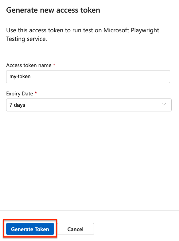 Create an access token to authorize access to your Playwright workspace, and to run existing Playwright tests in your workspace. You can create multiple access tokens for your workspace. When you create an access token, you have to specify an expiration date for the token. After a token expires, you need to create a new access token.