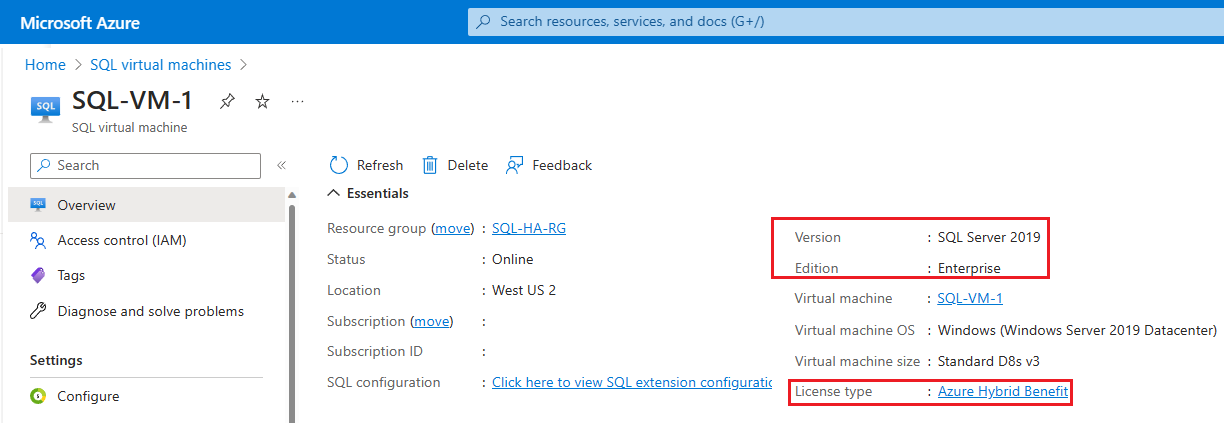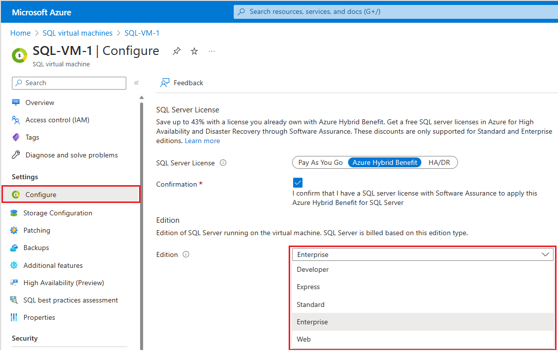 • After SQL Server is updated on the VM, make sure that the Edition property of SQL Server in the Azure portal matches the installed edition number for billing.