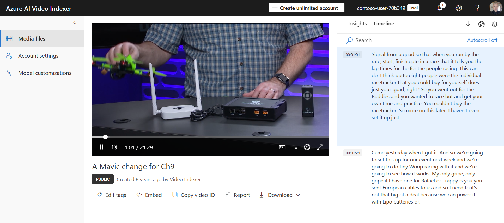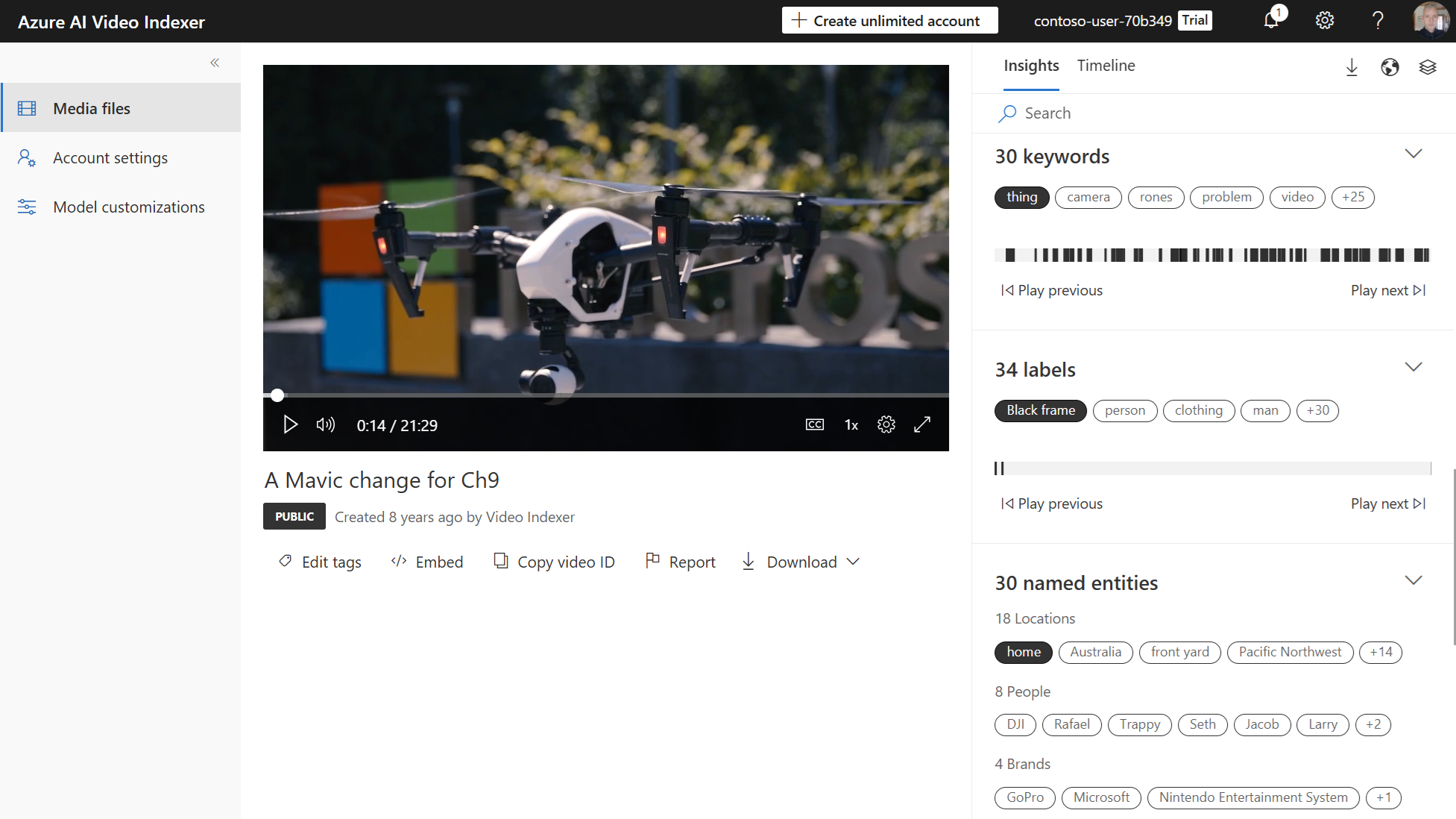 - When indexing finishes, select your video to see the insights.