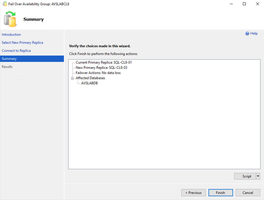 Refresh the Object Explorer view in SQL Server Management Studio (SSMS), verify that the migrated instance is now the primary replica.
