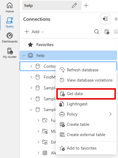 - An Azure Data Explorer cluster and database. Create a cluster and database.