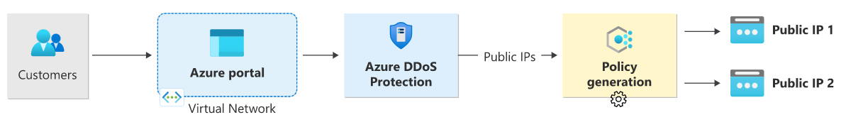 Azure DDoS Protection monitors actual traffic utilization and constantly compares it against the thresholds defined in the DDoS Policy. When the traffic threshold is exceeded, DDoS mitigation is initiated automatically. When traffic returns below the thresholds, the mitigation is stopped.