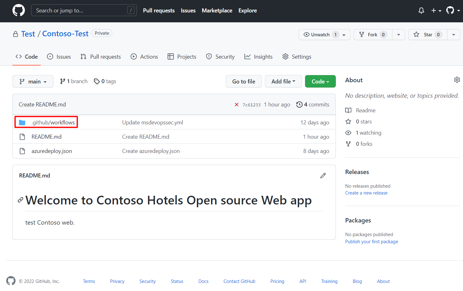 Screenshot that shows where to navigate to, to select the GitHub workflow folder.