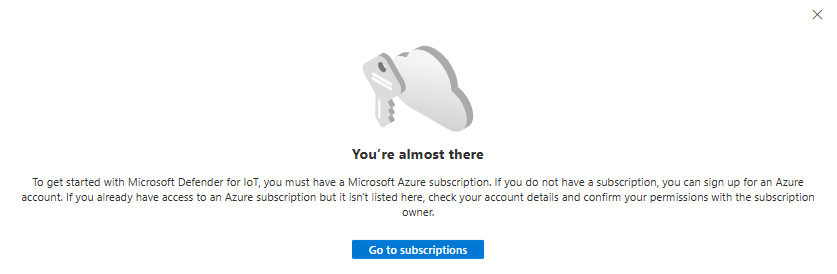 Open Defender for IoT in the Azure portal, select Plans and pricing, where you're prompted to create a new subscription.
