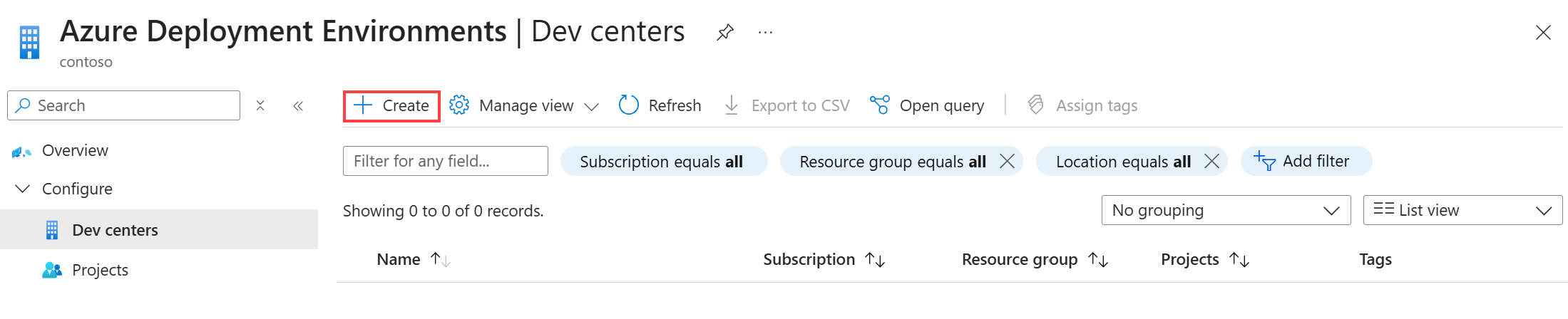 To create a Deployment Environments project in your dev center:
