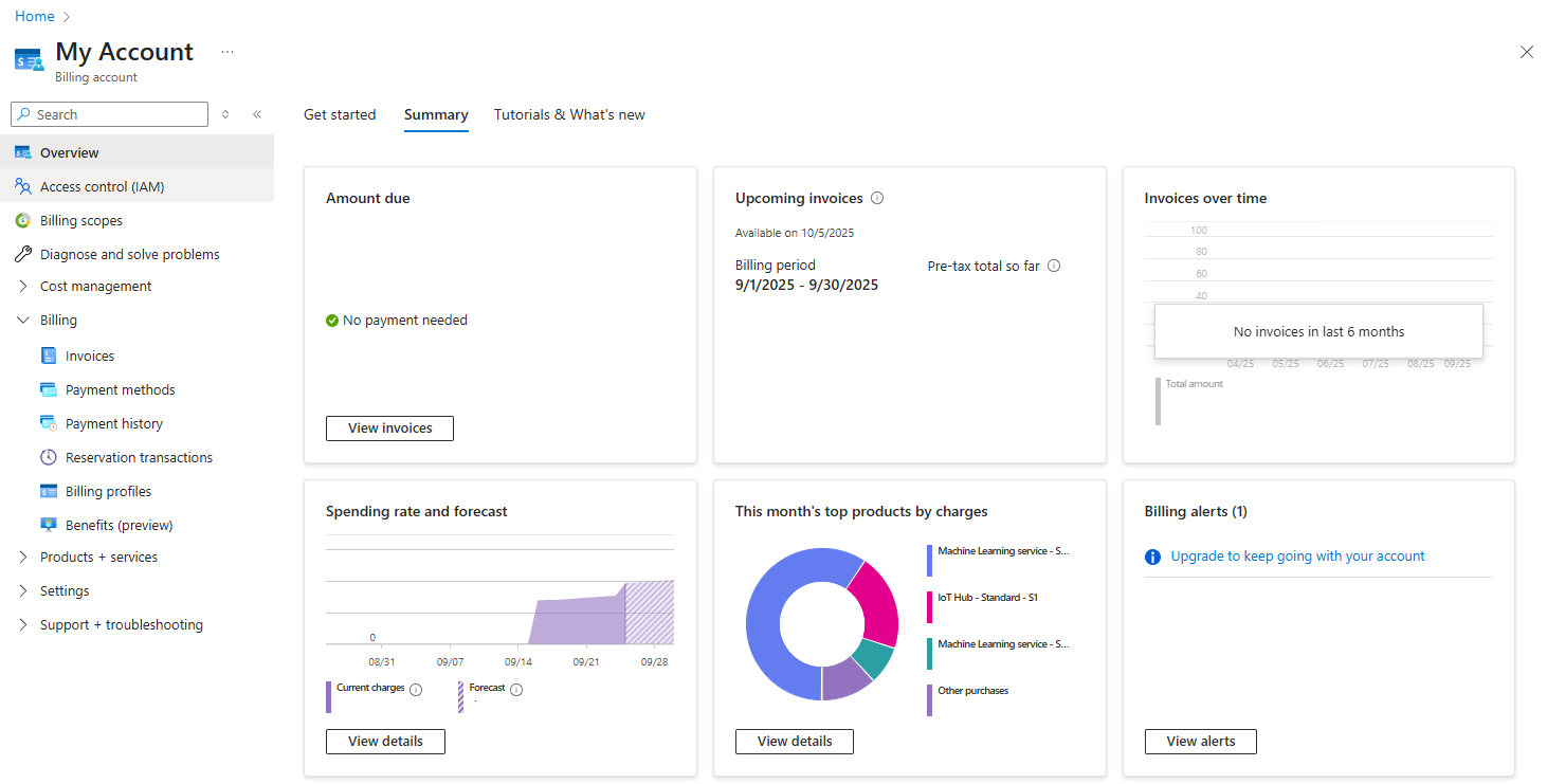 Review your current spend and other billing information.