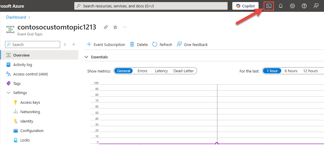 $endpoint = (Get-AzEventGridTopic -ResourceGroupName $resourceGroupName -Name $topicName).Endpoint $keys = Get-AzEventGridTopicKey -ResourceGroupName $resourceGroupName -Name $topicNamePrepare the event. Copy and run the statements in the Cloud Shell window.