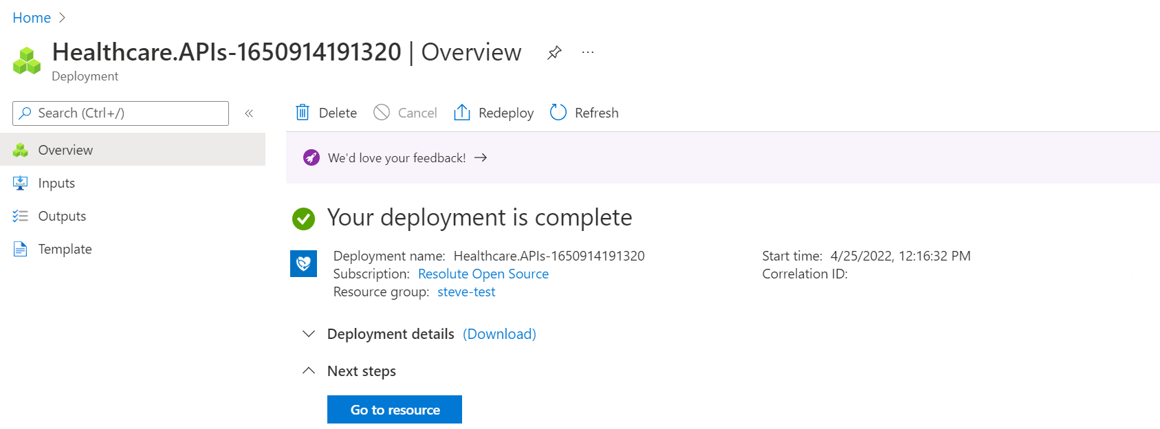 To see your newly deployed workspace, select Go to resource after the workspace deployment process is complete.