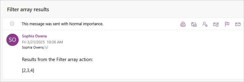 To confirm whether Filter array action creates the expected results, send yourself a notification that includes output from the Filter array action.