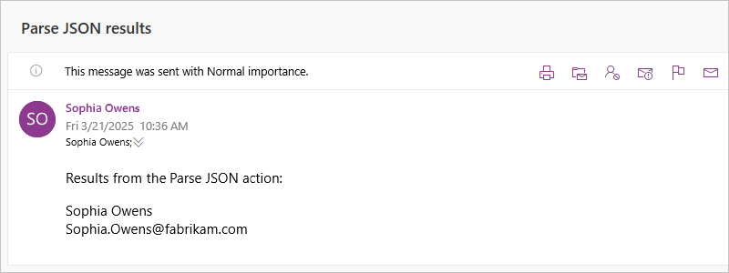 "To": "sophia.owen@fabrikam.com"