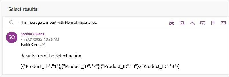 To confirm whether the Select action creates the expected results, send yourself a notification that includes output from the Select action.