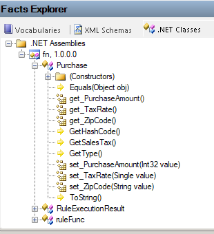Facts Explorer Browse for XML and .NET facts, and then drag those facts to the conditions editor or actions editor.