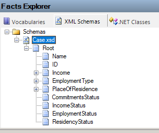 1. In the Facts Explorer window, select the XML Schemas tab.