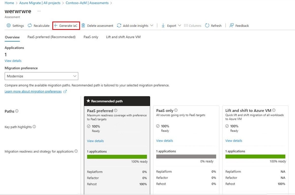 Follow the steps to generate Infrastructure as Code (IaC) for your assessed workloads or applications in Azure Migrate: