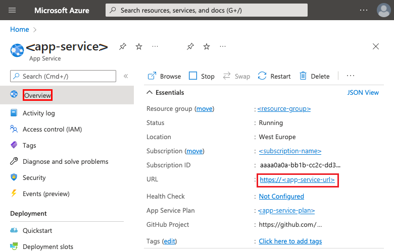 You can also navigate directly to https://<app-name>.azurewebsites.net.