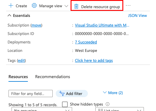 When you're finished, you can delete all of the resources from your Azure subscription by deleting the resource group.