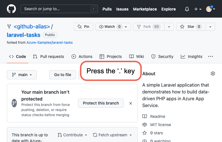 2. Navigate to https://github.com/Azure-Samples/laravel-tasks.
