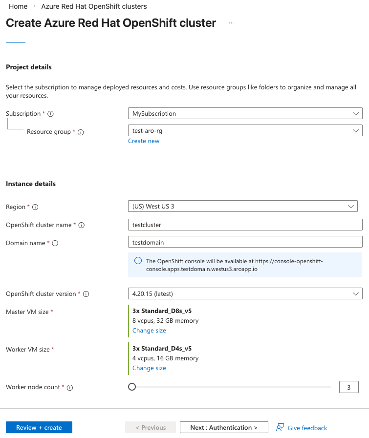 If you need to deploy an Azure Red Hat OpenShift cluster with more than 100 worker nodes, see Deploy a large Azure Red Hat OpenShift cluster.