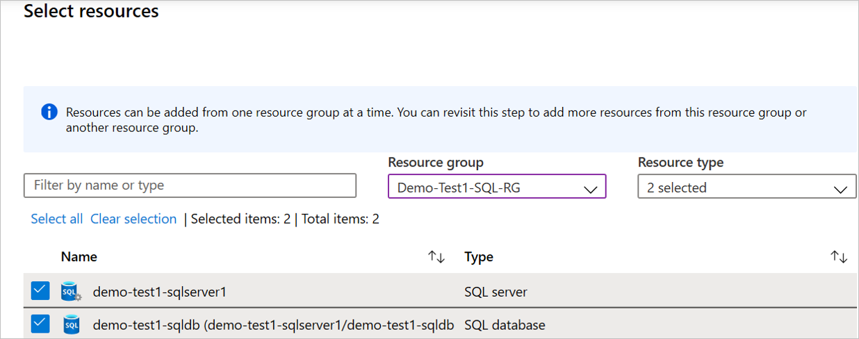 In Across regions, for the SQL server resource, in the Destination configuration column, select Resource not assigned.
