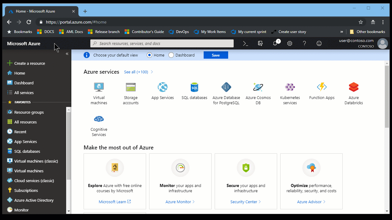 Go to your dashboard in the Azure portal.