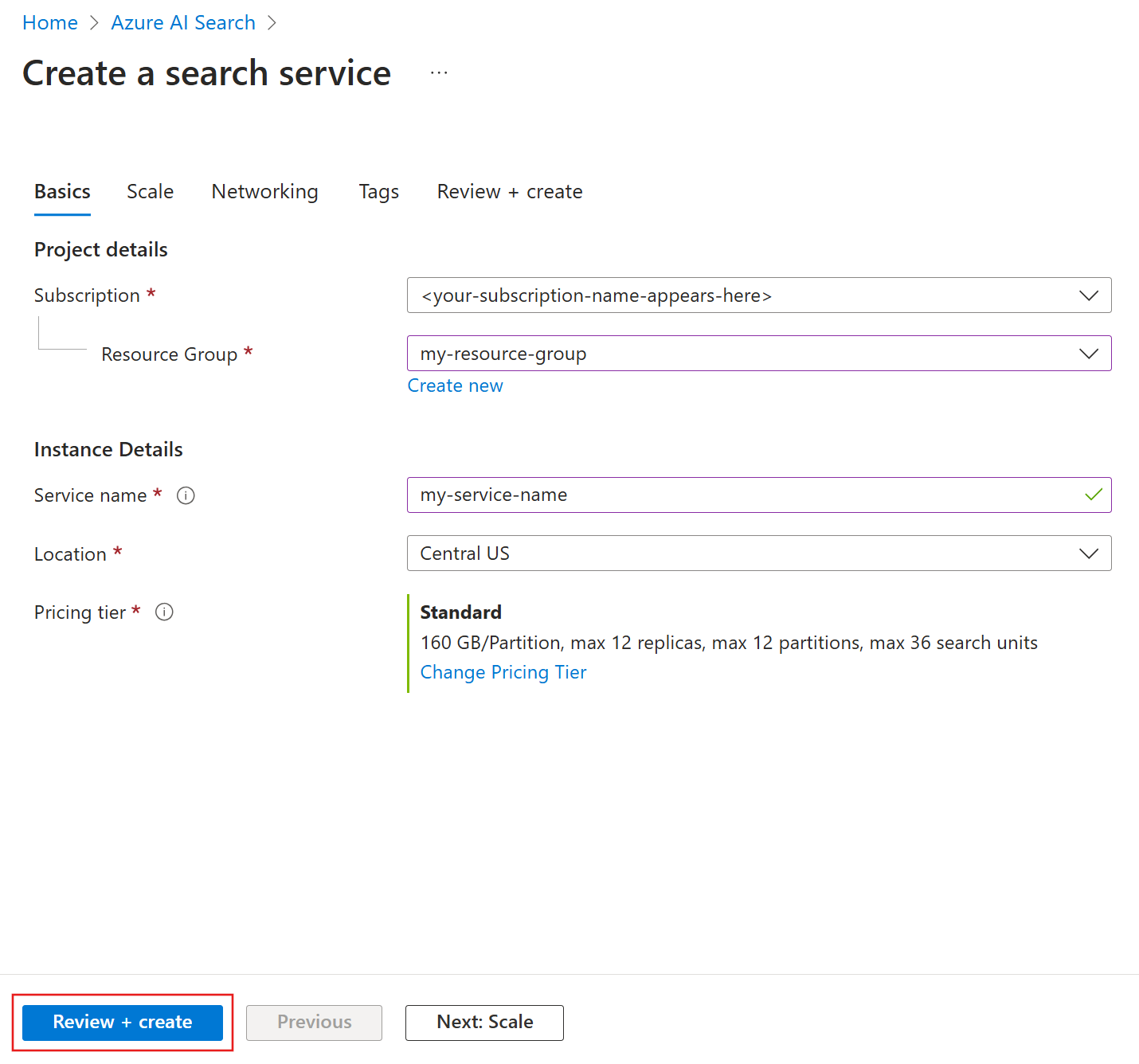 After providing the necessary inputs, create your search service.