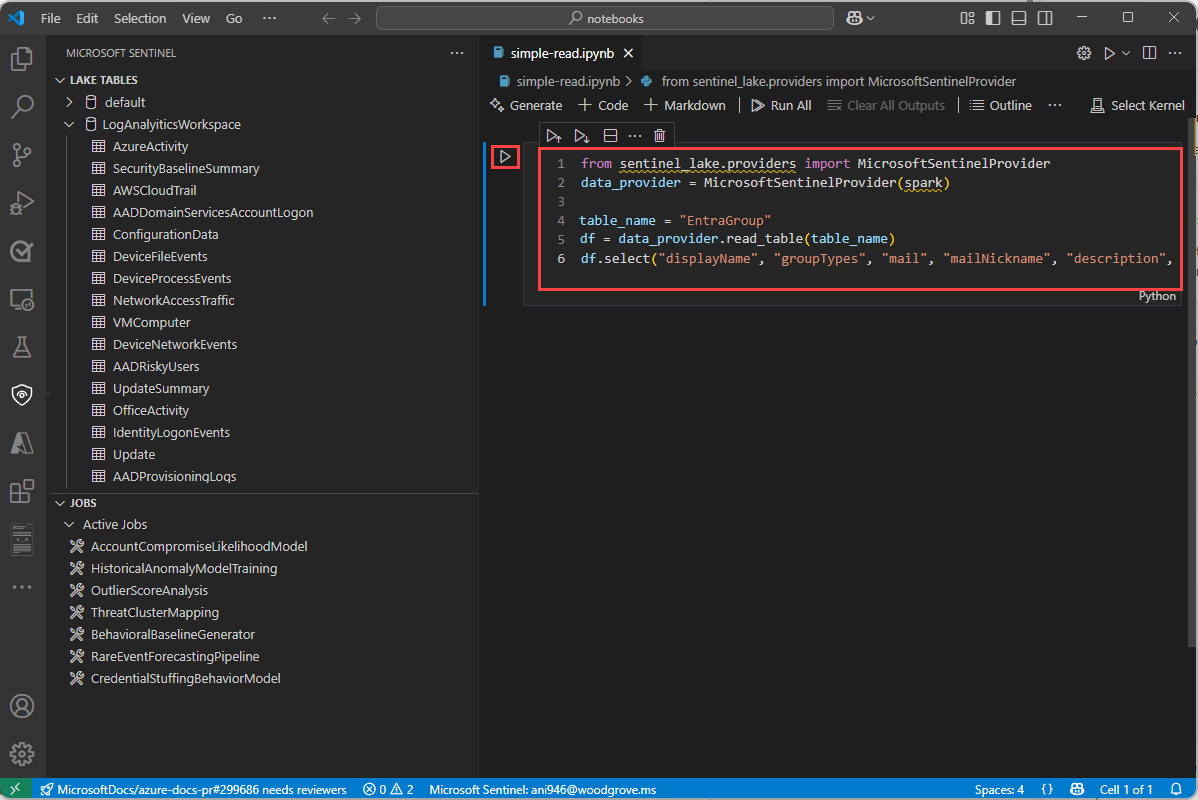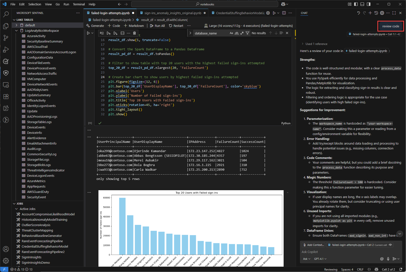 Jupyter notebooks provide an interactive environment for exploring, analyzing, and visualizing data in the Microsoft Sentinel data lake and federated tables. With notebooks, you can write and execute code, document your workflow, and view results—all in one place. This makes it easy to perform data exploration, build advanced analytics solutions, and share insights with others. By leveraging Python and Apache Spark within Visual Studio Code, notebooks help you transform raw security data into actionable intelligence.