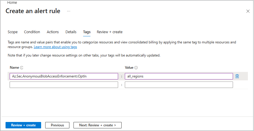 On the Tags tab, select tags and then assign values for them. For more information, see Learn about tags.