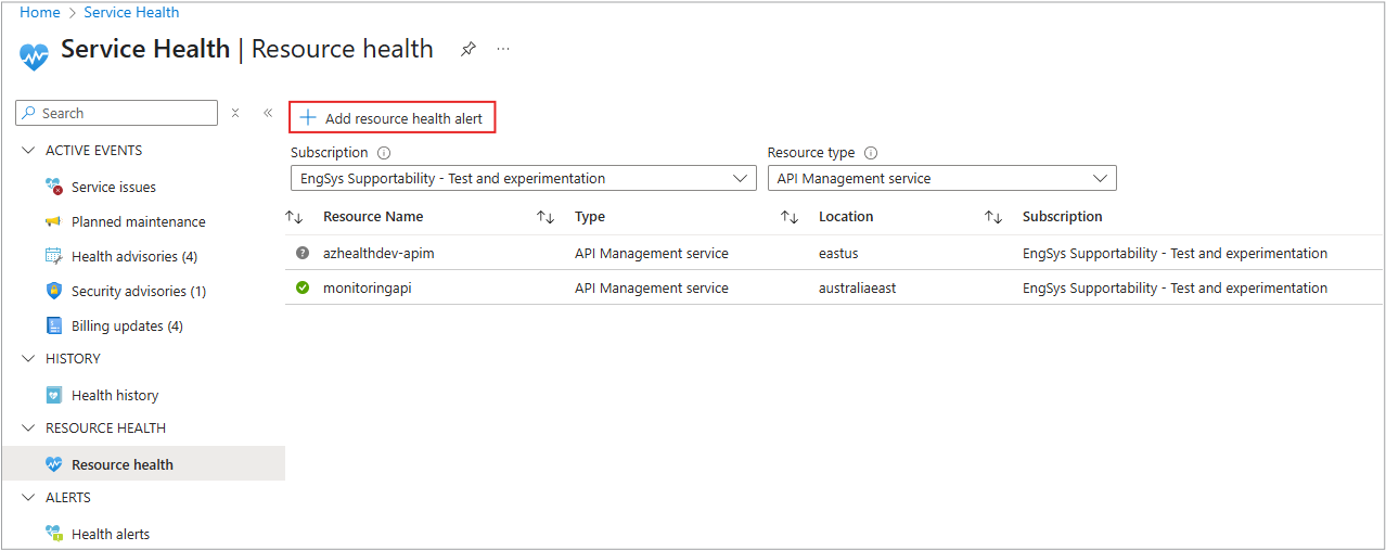 This article shows you how to create and configure Azure Resource Health alerts from the Service Health portal.