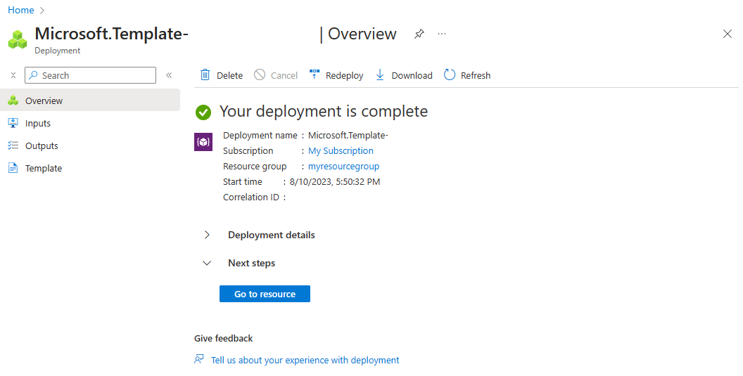 Resource group myresourcegroup A new resource group name or an existing one from your subscription.