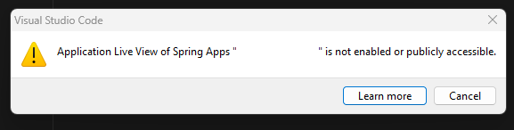 If you try to open Application Live View for a service instance or an app that hasn't enabled Application Live View or exposed a public endpoint, you see an error message.