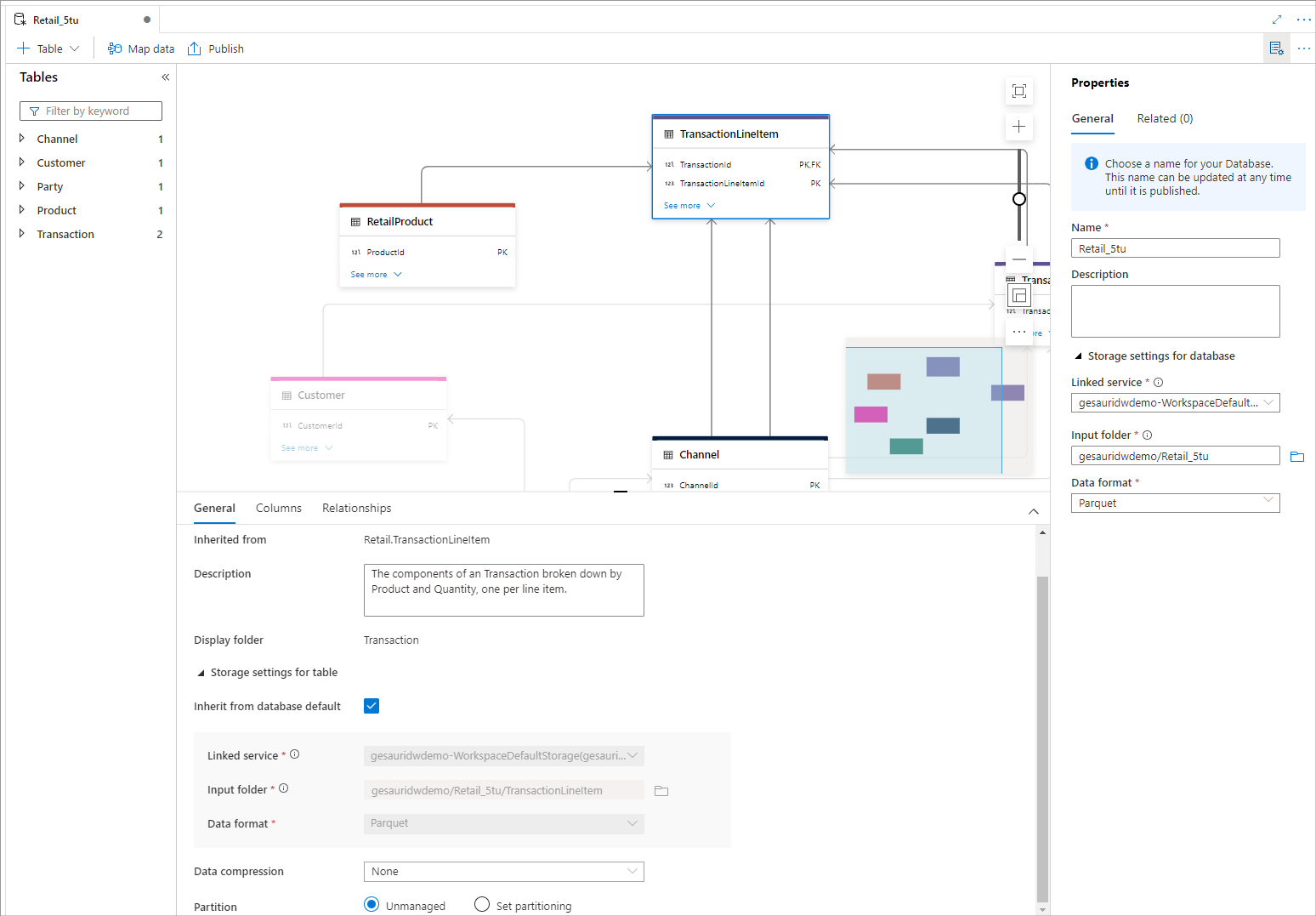 To save your layout and make it available within Azure Synapse, Publish all changes. This step completes the setup of the lake database and makes it available to all components within Azure Synapse Analytics and outside.