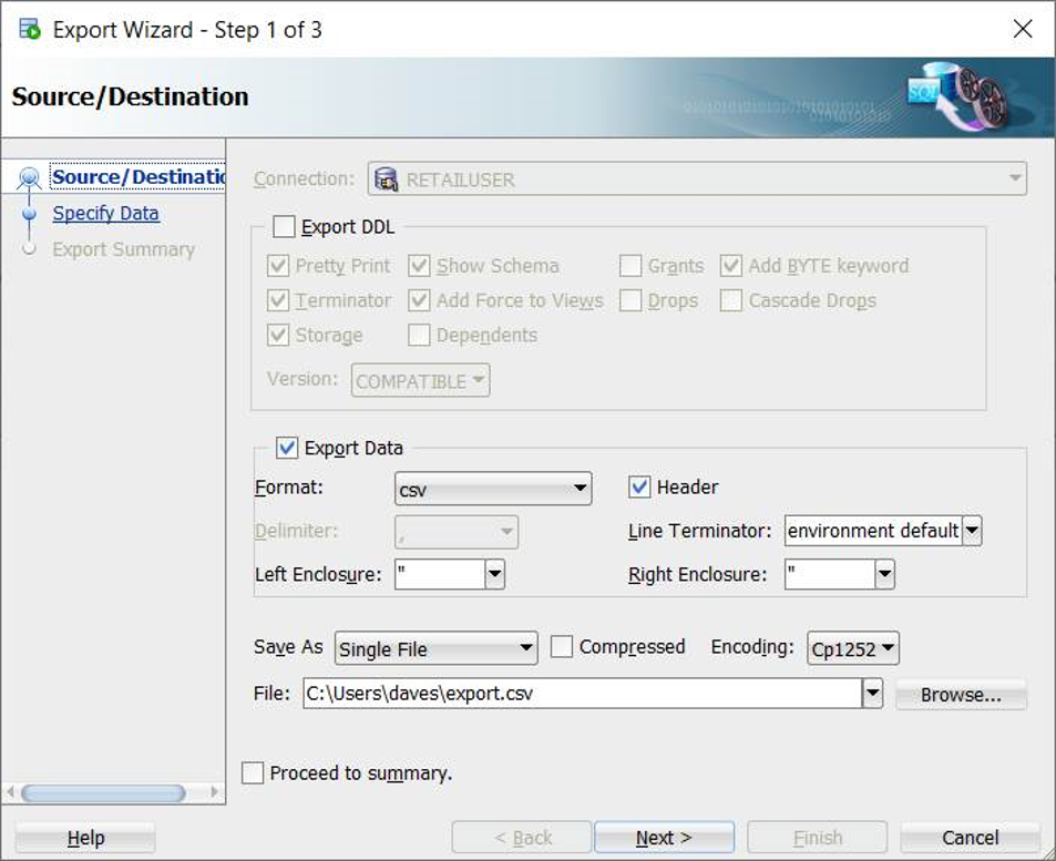 You can use several techniques to extract Oracle data when migrating from Oracle to Azure Synapse. The next sections demonstrate how to extract Oracle data using Oracle SQL Developer and the Oracle connector in Data Factory.