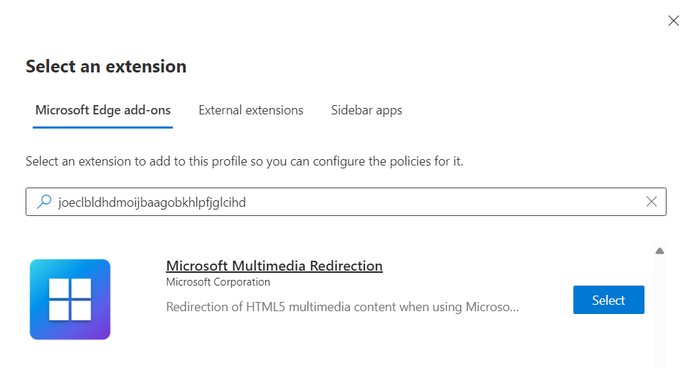 To enable the multimedia redirection browser extension using Microsoft Intune, expand one of the following sections, depending on which browser you're using: