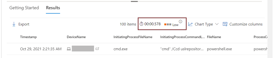 EmailEvents | where Timestamp > ago(7d) | where ThreatTypes has "Malware" | project EmailReceivedTime = Timestamp, Subject, SenderFromAddress, AccountName = tostring(split(RecipientEmailAddress, "@")[0]) | join ( DeviceLogonEvents | where Timestamp > ago(7d) | project LogonTime = Timestamp, AccountName, DeviceName ) on AccountName | where (LogonTime - EmailReceivedTime) between (0min .. 30min)Apply time filters on both sides—Even if you're not investigating a specific time window, applying time filters on both the left and right tables can reduce the number of records to check and improve