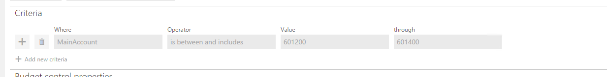 Form: BudgetControlConfiguration (RulesDetailsCriteriaFastTabPage) (Budgeting > Setup > Budget control > Budget control configuration)