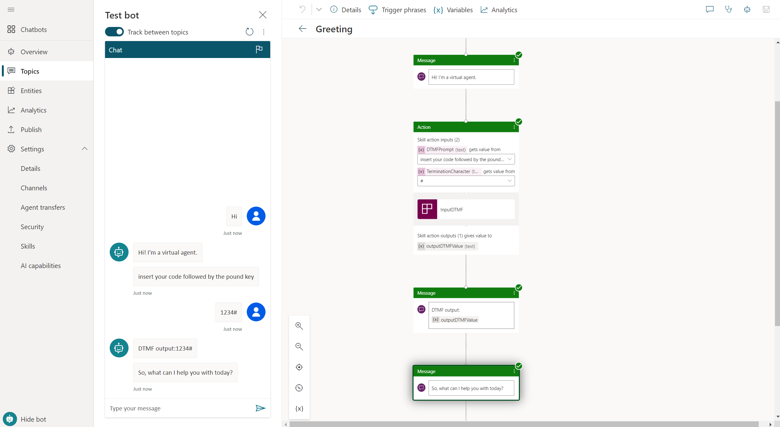 With Copilot Studio, you can extend your bot with Microsoft Bot Framework skills. You'll need such Bot Framework skills to aggregate data for DTMF.