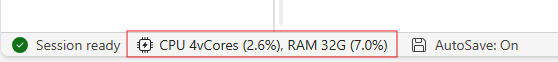 You can view the compute resources update on notebook status bar, and monitor the CPU and Memory usage of the compute node in real-time.
