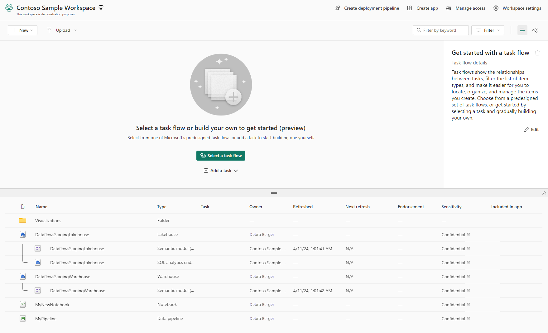 Workspaces are places to collaborate with colleagues to create collections of items such as lakehouses, warehouses, and reports, and to create task flows. This article describes workspaces, how to manage access to them, and what settings are available.